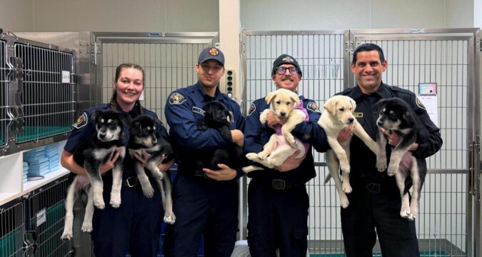 Meanwhile, sheriff’s deputies tracked down the people believed to have dropped off the dogs and found three more puppies that also needed treatment. An animal cruelty or neglect investigation is underway. The pair claimed they were caring for the puppies temporarily, authorities said.