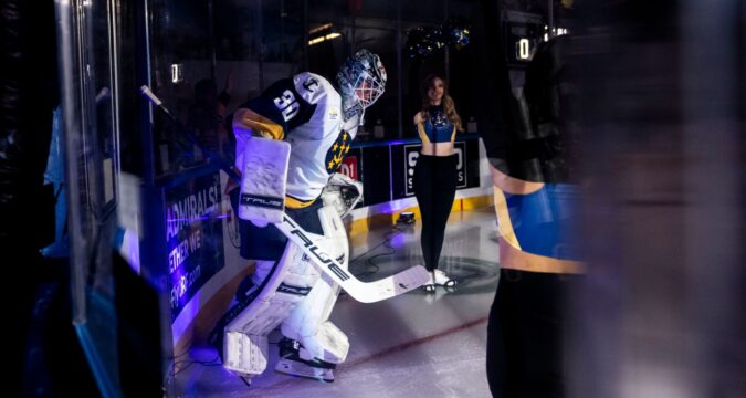 Admirals goalie Isaac Poulter made 23 saves for his second victory of the weekend and No. 1 star honors. Brandon Osmundson, who grew up in the Hampton Roads Whalers’ youth program, opened the scoring from the slot at 2:08 into the second period. Kevin Conley doubled the lead with a backhand on a breakaway at 4:54.