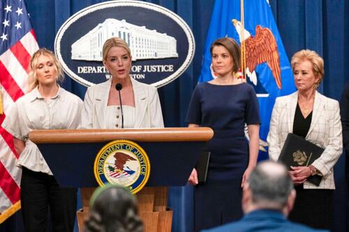 Bondi was flanked by Education Secretary Linda McMahon and Maine Assemblywoman Laurel Libby, who was censured by her state’s Democrat-led state legislature for posting photos and the identity of a male transgender athlete from Greely High School who won an indoor track state pole vaulting title this year.