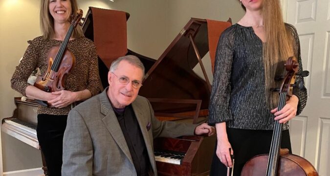 Trio Niche re-opens the Williamsburg Music Club’s musical offerings after a several-year pause Nov. 8 in W&M’s Comey Recital Hall with a program of 19th century selections. From left, Susan Via, violin; Tom Marshall, pianoforte; and Sarah Closson, cello. (Dean Shinn)