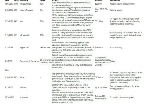 Indeed, as Bank of America shows, in just the past few weeks the US government had taken equity stakes in tech, pharma, rare earths and metals (as an side, the US government investing in stocks is not a new phenomenon, but has been more prevalent for bailouts than strategic investments in recent decade).