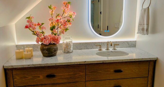 My daughter rounds out this lighting discussion. She just completed a bathroom finishing project in the past month. Years ago, I roughed-in a full bathroom on the third floor of her home. It was time to finish it off.