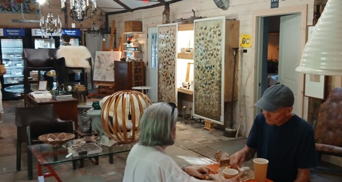 Owned by Ivy and Daniel Kramp, the couple offers estate finds, local artwork and a trove of vintage crystal, pottery, linens and collectibles. Outside, an old greenhouse has a “tag sale” with more antiques and treasures.