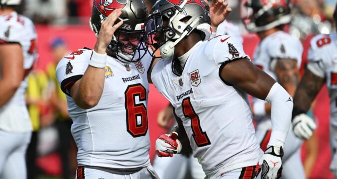 The Buccaneers, who were missing star receivers Mike Evans and Chris Godwin and running back Bucky Irving, lost rookie receiver Emeka Egbuka to a hamstring injury in the second half.