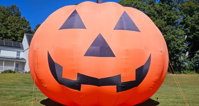 “What I didn’t know is that you are supposed to put sandbags underneath it,” he said. “This was pumpkin No. 1 in October 2021 I was deflating it for the end of the year and a gust of wind came in and shredded it.”