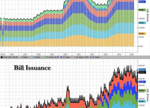 This means that the Treasury will rely more on the shortest-dated securities to fund the gaping federal deficit at least until 2026, after Treasury Secretary Bessent said last month that yields on longer-dated Treasuries were too high to consider boosting sales of such debt. In doing so he is implicitly endorsing the same strategy that he slammed when it took place under Janet Yellen.