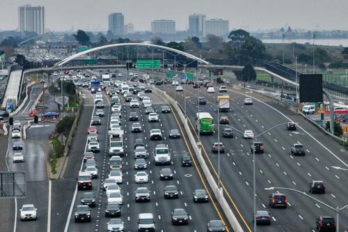 Cars travel along Interstate 80 in Berkeley, Calif., on Jan. 16, 2024. Justin Sullivan/Getty Images