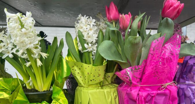 This March 17, 2024, image provided by Jessica Damiano shows forced spring bulbs for sale in Long Island, N.Y. (Jessica Damiano via AP)