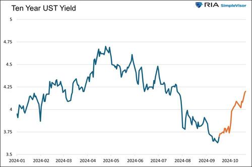 The recent 50-basis point increase in longer-term yields started the day after the Fed cut rates by 50 basis points. Some bond bears claim the Fed will rekindle inflation by cutting rates while the economy remains strong. Others fear that fiscal deficits are out of control, leading to inflation. An emerging group of bond bears, led by Paul Tudor Jones and Stanley Druckenmiller, worry that a Donald Trump Presidency and Republican control of Congress will ramp up deficits, resulting in high inflation.