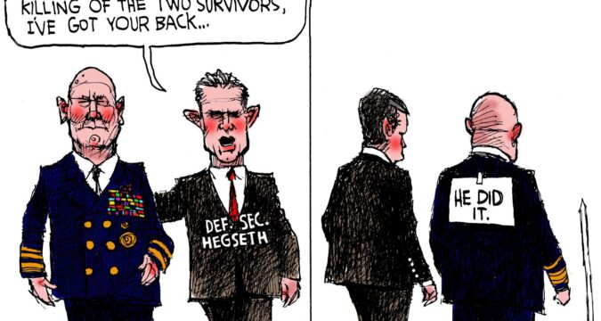 Posted in News Cartoon: He’s Got Your Back December 6, 2025 Cartoon by Mike Luckovich for Dec. 7, 2025. https://www.pilotonline.com/2025/12/06/cartoon-hes-got-your-back/