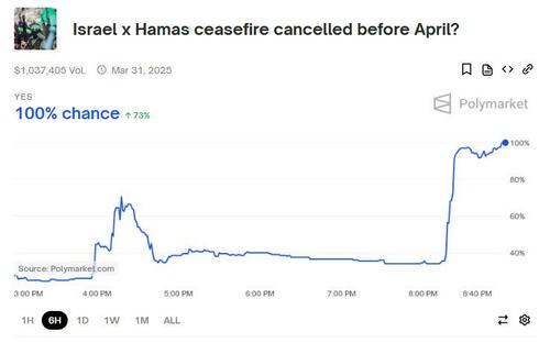 The news was so unexpected it took even Polymarket by surprise where odds of a ceasefire lasting into April were in the low 30s just earlier this evening before hitting 100%.