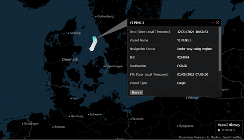 Also, Mercogliano cited ship tracking data that shows Yi Peng 3 is being escorted by at least one Danish warship.