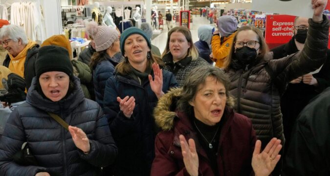 Dozens of protesters also staged a brief sit-in at a Target store in St. Paul demanding that the retailer bar entry to federal agents. Target, headquartered in Minneapolis, has been criticized by activists after a video showed federal agents, detain two employees at a store in Richfield, Minnesota.
