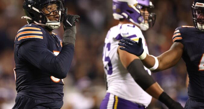 Odeyingbo had a sack and two quarterback hits and drew a holding penalty against fill-in Minnesota Vikings left tackle Justin Skule in Monday’s 27-24 loss at Soldier Field. On the Vikings’ first third down, Odeyingbo walked Skule back into the pocket to set up tackle Gervon Dexter Sr.’s sack.
