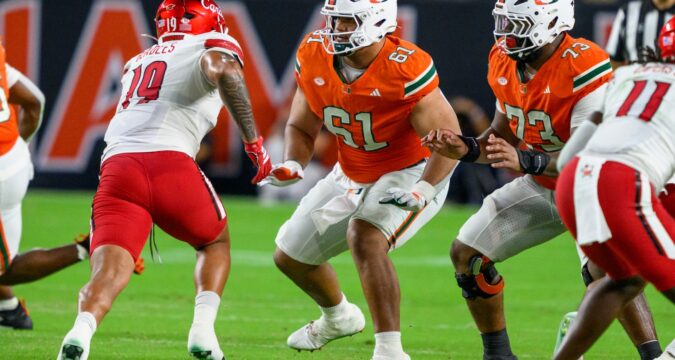 Six of Miami’s 12 penalties in the loss to SMU were pre-snap penalties; five were on the offensive line and one was on the defensive line.