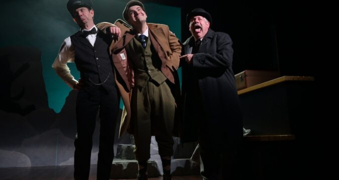 But the tale is told through the lens of a trio of harried actors presenting a play, a show-within-a-show, if you will. As the actors play multiple roles, the air is ripe with quick costume changes and assumed accents, adding to the fun.