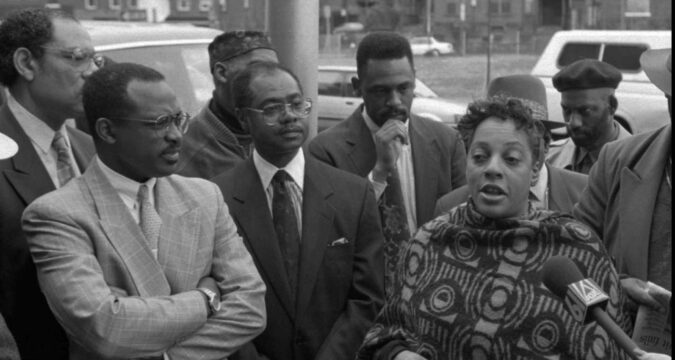 Elizabeth Horton Sheff speaks at a memorial ceremony for former Hartford Mayor Carrie Saxon Perry.