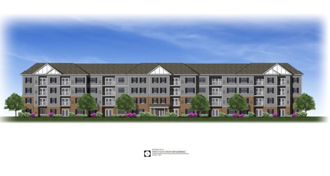 A rendering of one of the four-story apartment buildings planned for Jordan Lane in Wethersfield. (Courtesy of Town of Wethersfield)