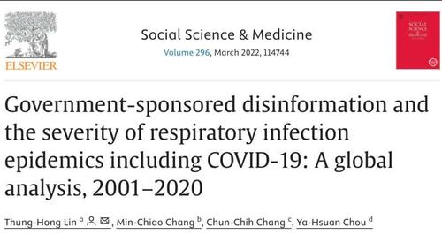 The article is titled “Government-sponsored disinformation and the severity of respiratory infection epidemics including COVID-19: A global analysis, 2001–2020”