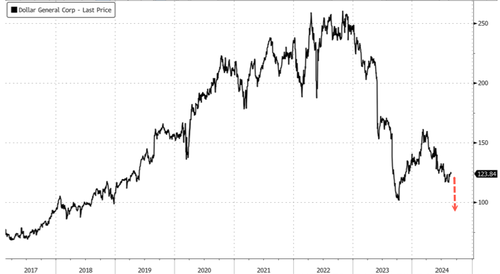 Dollar General Shares Crash After Earnings Miss & Outlook Slashed On “Financially Constrained Core Consumer”