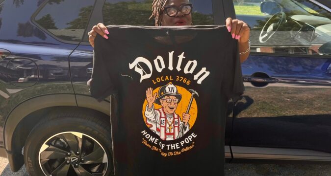 The Dolton firefighter’s union has found success selling T-shirts with an image of Pope Leo XIV as part of a community fundraiser. The shirts refer to Dolton as “Home of the Pope,” and include the phrase “From the Valley to the Vatican” in reference to a nearby Dolton neighborhood.