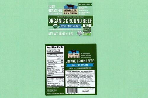 The alert applies to 1-pound vacuum-packed packages of “ORGANIC RANCHER ORGANIC GROUND BEEF 85% LEAN 15% FAT,” marked with “Use or Freeze By 06-19-25” and “Use or Freeze By 06-20-25.”