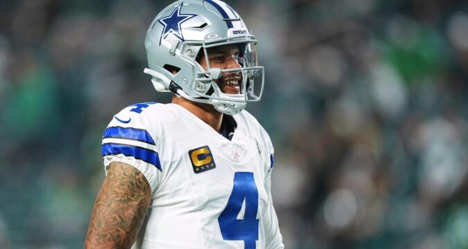 Prescott and Carter exchanged words after the opening kickoff, and Carter spit on Prescott’s jersey before backing away. Prescott quickly motioned to a nearby official who threw the flag and sent Carter packing. Fans booed as Carter walked off slowly, holding his helmet in his hands behind his back.