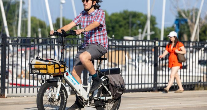 Illinois rules treat e-bikes much like regular bicycles. Riders can use most roads and bike lanes, with few restrictions. Notably, state law prohibits e-bikes on sidewalks, though you can ride an e-scooter on the sidewalk. State rules also say you must be 18 to operate an e-scooter, marking a significant inconsistency between e-bikes and e-scooters. While you must be 16 to operate a class 3 e-bike, there are no age restrictions on class 1 or class 2 e-bikes.