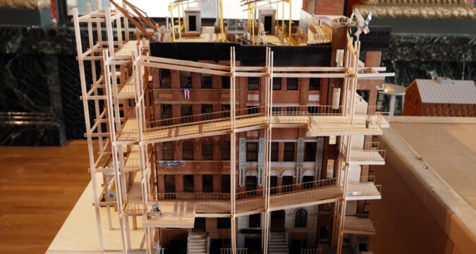 The Disappointed Tourist at the Chicago Architecture Center depicts more than 300 images of mostly demolished structures from more than 30 countries around the world. Chosen and painted by Brooklyn-based artist Ellen Harvey, the exhibit is a straightforward exercise in memory and nostalgia, sometimes leavened with humor. Not everything depicted is a building. For example, there’s the Titanic — as well as the iceberg.