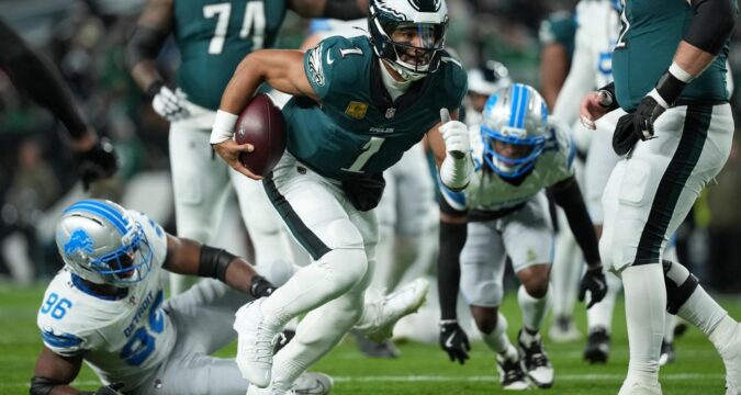 FILADELFIA (AP) — Jalen Hurts anotó el único touchdown en un esfuerzo por lo demás débil de la ofensiva de los Eagles de Filadelfia, y fue suficiente para llevarlos a una victoria de 16-9 sobre los Lions de Detroit, quienes fallaron en todos sus intentos en cuarta oportunidad el domingo por la noche.