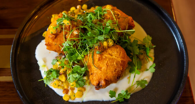 The limited-time, three-course menu created by the chefs is available through November at $95 for a three-course menu that includes: Quahog (clam) fritter with clam velouté, smoked mussels, and potato–corn relish; three sisters cassoulet with confit duck leg, beans, corn, squash, duck jus, and pickled cranberry; Corn pain perdu with brown butter roasted pear and squash, Pequot maple sauce, and vanilla ice cream.