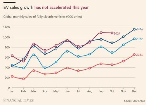 Now the U.S. risks falling further behind in its green transition as EV adoption lags and President-elect Trump’s plans to cut subsidies threaten progress. While President Biden aims for EVs to make up half of new car sales by 2030, they accounted for just 10% last year, according to FT.