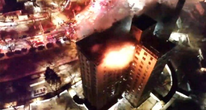 Los bomberos respondieron poco antes de las 12:30 a.m. al edificio de la Autoridad de Vivienda de la Ciudad de Nueva York en el Bronx, donde se vio a personas asomándose por las ventanas pidiendo ayuda mientras las llamas envolvían partes de los pisos superiores, declararon autoridades.