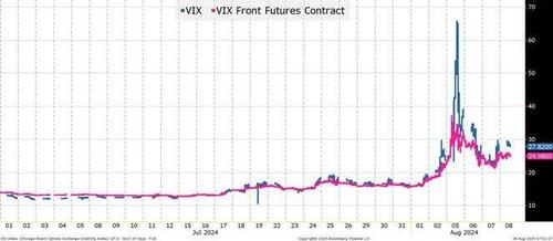 The VIX calculation hit a high around 8:35 am EST. It was going higher in a straight line from 4am until 8:30 am. The VIX futures contract, where people risk actual money, barely budged during that period.