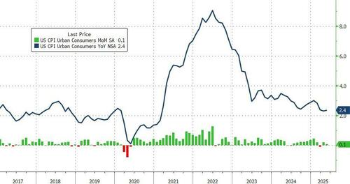In what is reportedly the first real test of the tariff terror pass-through impact on the average American, today’s CPI print was expected to rise modestly following survey after survey suggesting the fecal matter is about is about to strike the rotating object… just like every mainstream media economist warned.