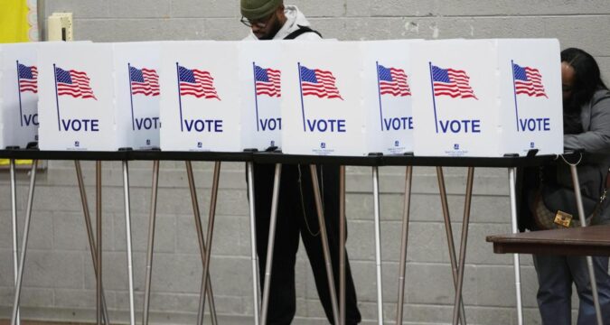 FILE – People wait to cast their ballot at the Horatio Williams Foundation in downtown Detroit, Tuesday, Nov. 4, 2025. (AP Photo/Ryan Sun,File)