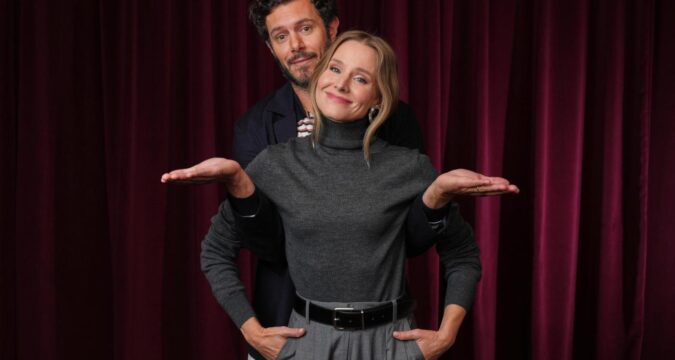 This image released by Netflix shows Kristen Bell, left, and Adam Brody in a scene from “Nobody Wants This.” (Stefania Rosini/Netflix via AP)