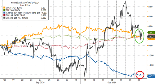 Since the last FOMC meeting on September 18th, bonds have suffered a bloodbath while gold, stocks, and the dollar are all up modestly…