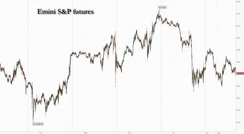 US equity futures are flat, with cash markets of course closed for Labor Day holiday, stabilizing after Friday’s selloff in tech stocks amid renewed Nvidia jitters, and setting a steadier tone at the start of a month that could bring plenty of tests to markets trading near record highs. S&P futures were unchanged with Nasdaq futures rising 0.1% to start a traditionally brutal month for markets.