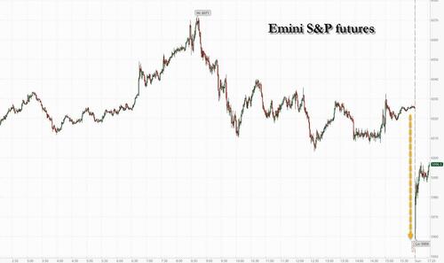 While emini S&P futures opened about 60 points, or 1% lower, at 6pm ET, they have since trimmed the loss in half, and at last check were back to just shy of 6,000, and about 2% below all time highs.