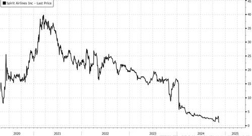 In premarket trading in New York, shares of Spirit were higher by 4%, around $1.12. On the year, shares have plummeted 93% as of Friday’s close. The float is 34.7% short.