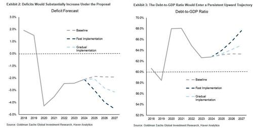 Goldman agrees, writing that the agreed measures imply significant upside risks to the bank’s growth, deficit and debt forecasts, even under gradual implementation…