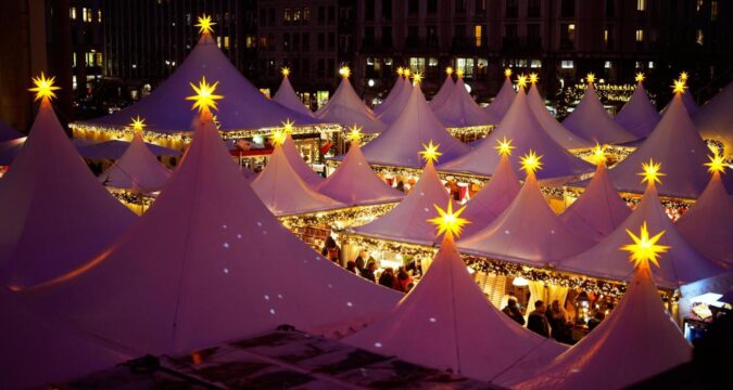 “We sense a very good atmosphere here, so we feel that in these difficult times we are currently experiencing, we can give visitors a little moment of respite here,” said Birgit Grothues, the spokeswoman for the market. “We see many smiling faces under our illuminated tent.”