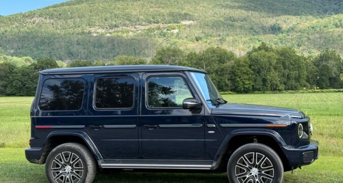As you float in this almost 7,000 lb. tank on wheels, the appeal and interior is what continues to ensure the MB is at the height of its game. Standard interior options on the G580 include Burmester 3D surround sound audio, comfort package, keyless start, multicolor ambient lighting and power sunroof, while all-wheel drive, low range gearbox, torque vectoring and a 200 kW DC fast charging system is also standard. Upgrades on our G580 tester were a dark blue nonmetallic exterior paint, black panel radiator grille, black logo package, leather grab handles, night package and an interior plus package. To say that the G580 is luxury on wheels and in style is an understatement.