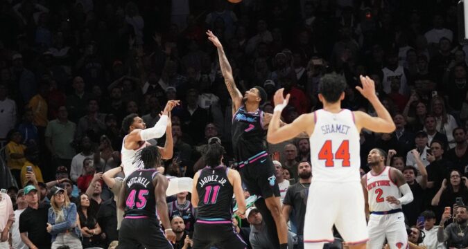 Miami lideraba por diez con tres minutos restantes antes de que los Knicks terminaran con una racha de 11-3. Nueva York se acercó a un punto con un triple de Towns con 22,4 segundos restantes, y Mitchell devolvió la ventaja de Miami a dos aproximadamente un segundo después al hacer el segundo de dos tiros libres.
