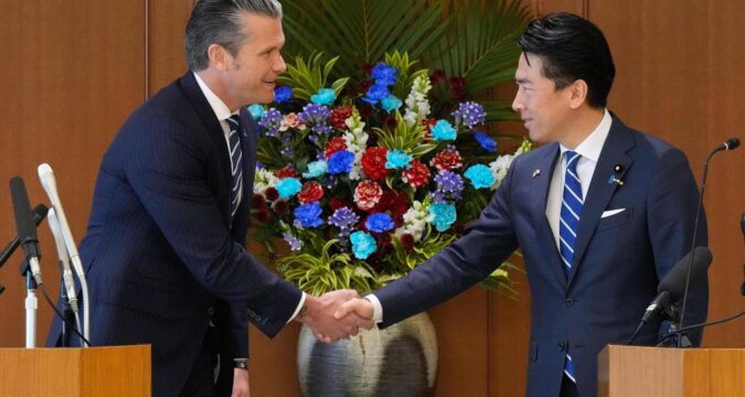 Hegseth said he was “glad” to see Japanese Prime Minister Sanae Takaichi — speaking alongside U.S. President Donald Trump this week — make a commitment to increase Japan’s defense spending, calling it “wonderful.”