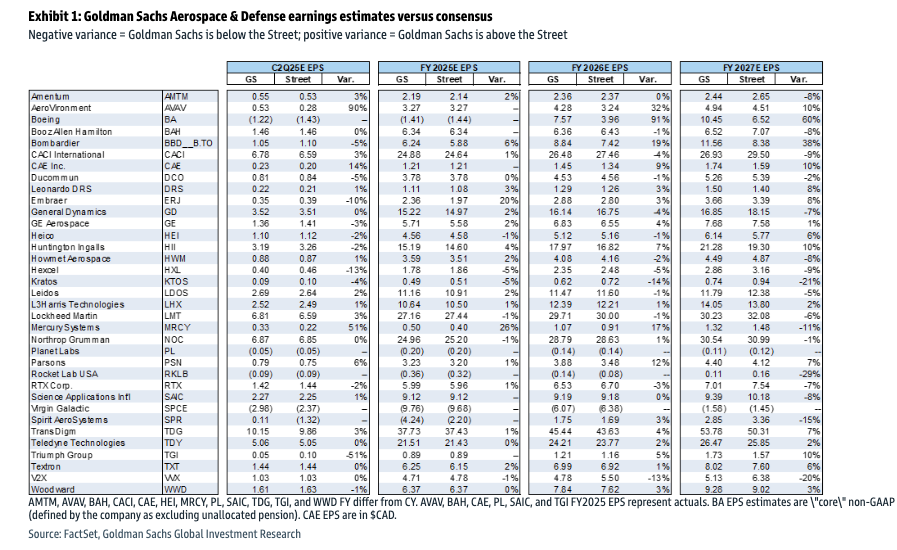 As Wall Street launches into earnings season, Goldman analysts, led by Noah Poponak, have offered clients a comprehensive note on the second-quarter earnings preview, with a focus on aerospace and defense stocks within their coverage.