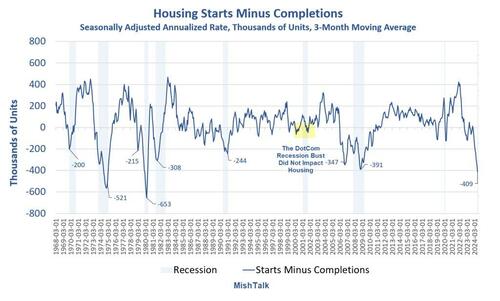 Housing Starts Are Tumbling As Completions Soar, It’s Very Recessionary