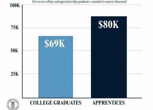 DoL data shows the average salary after completing a trade program is over $80,000, compared with $69,000 for college graduates. Many of these kids hold pointless woke degrees and carry insurmountable student debt. Increasingly, these universities are sliding into a dark pit of irrelevance ahead of the 2030s.