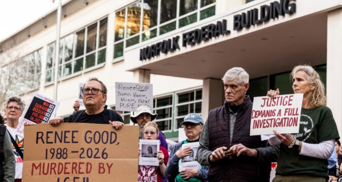 Roughly 300 people surrounded that memorial set up outside the Norfolk Federal Building Friday evening to protest Good’s death and the federal government’s mass deportation efforts. The building in downtown Norfolk houses an Immigration and Customs Enforcement field office. It was the first of a series of ICE protests scheduled for the weekend throughout Hampton Roads.